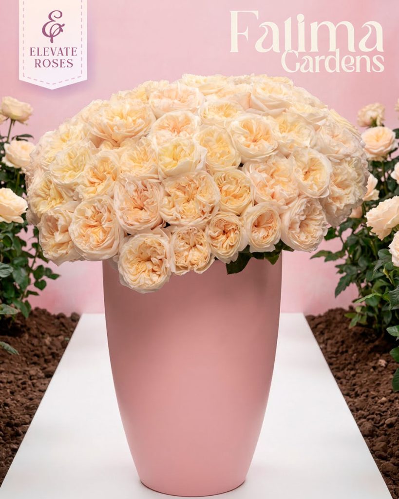 Completing this seasonal trio is Fatima Gardens, a refined cream garden rose recognized for its generous opening and lush bloom structure.